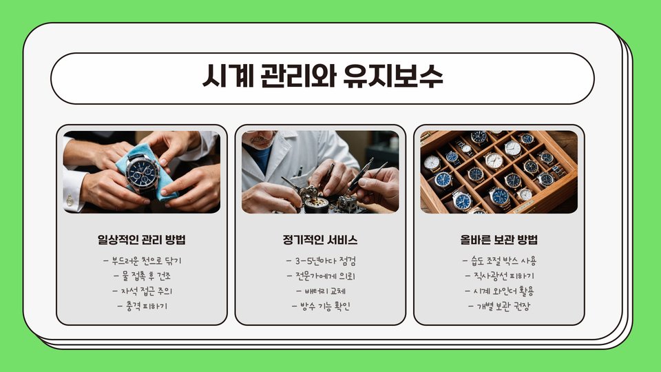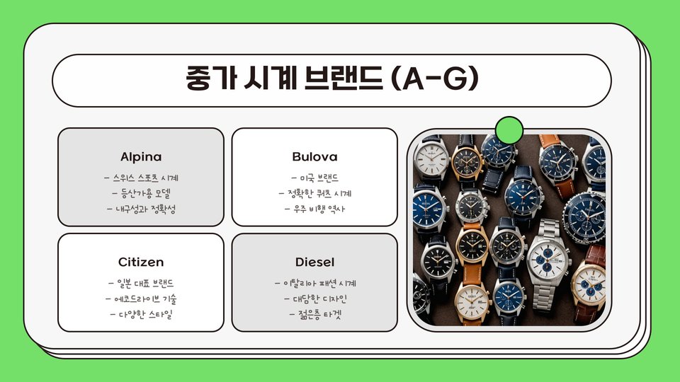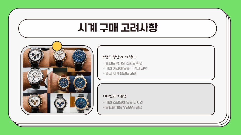 따라서, 본인의 취향과 예산에 맞춰 다양한 브랜드의 시계를 선택할 수 있습니다. 이 과정에서 각 브랜드가 가진 독특한 매력을 경험하며, 자신만의 스타일을 찾을 수 있습니다.