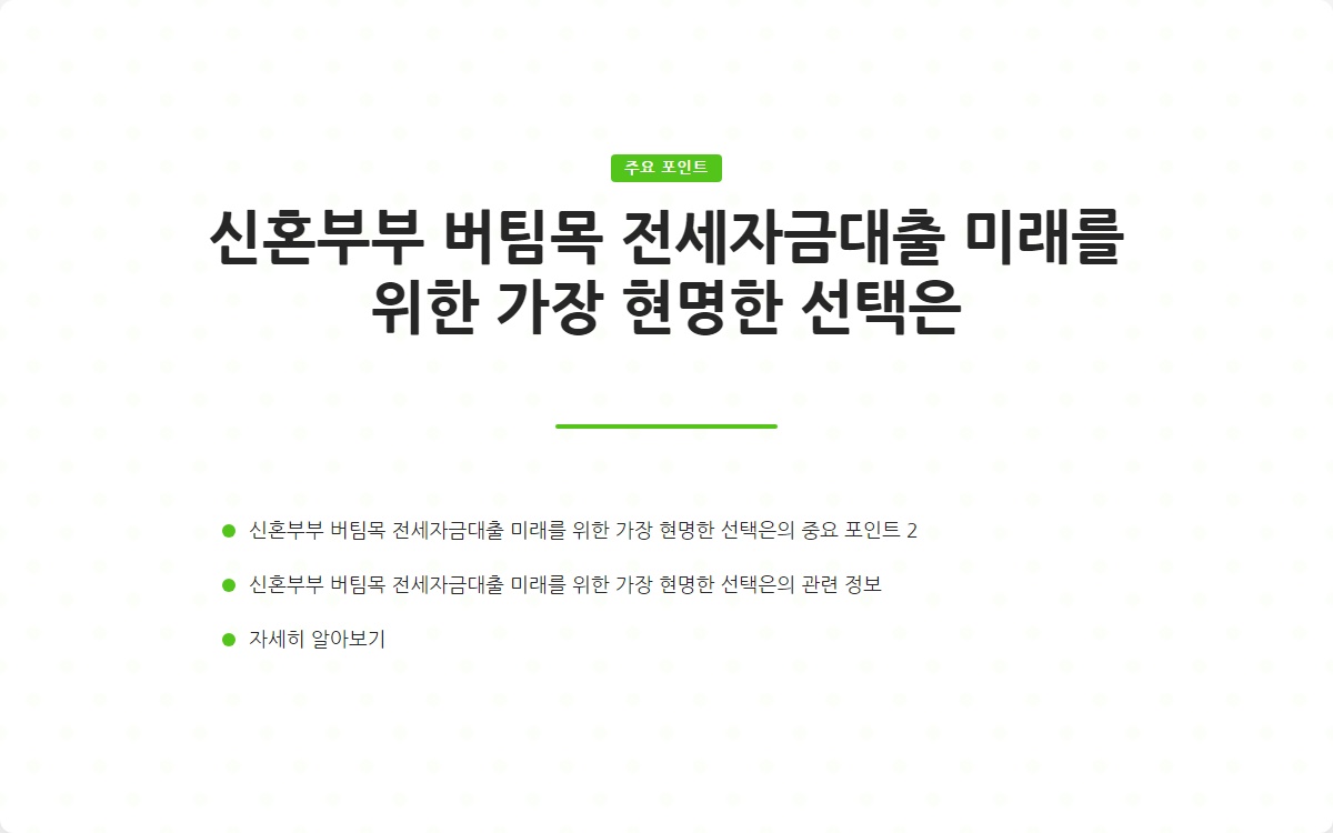 신혼부부의 새로운 시작, 버팀목 전세자금 대출로 안정적인 미래를 만들어보세요!