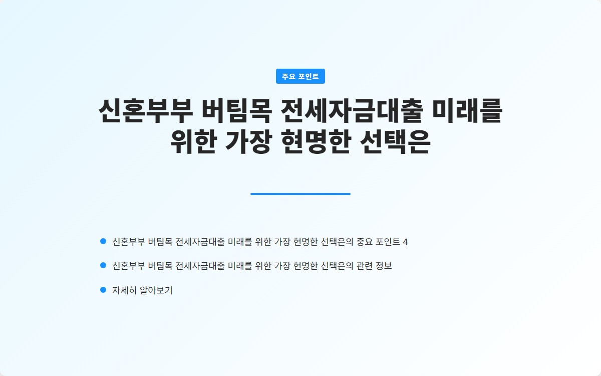 신혼부부의 새로운 시작, 버팀목 전세자금 대출로 안정적인 미래를 만들어보세요!