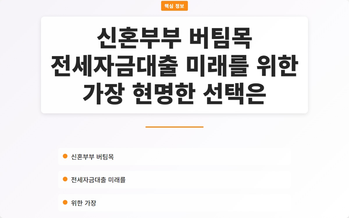 신혼부부 버팀목 전세자금대출 미래를 위한 가장 현명한 선택은