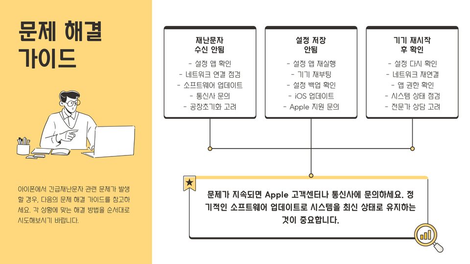 이렇게 하면, 사용자가 원하는 방식으로 알림을 받을 수 있게 되어 교통 사고나 자연재해가 발생했을 때 더 빠르게 대응할 수 있습니다. 설정을 마친 후, 반드시 자신의 변경 사항이 잘 적용되었는지 확인하는 과정이 필요합니다. 만약 변경사항이 적용되지 않거나 문제가 발생한다면, 아이폰을 재부팅하는 것도 좋은 방법입니다.