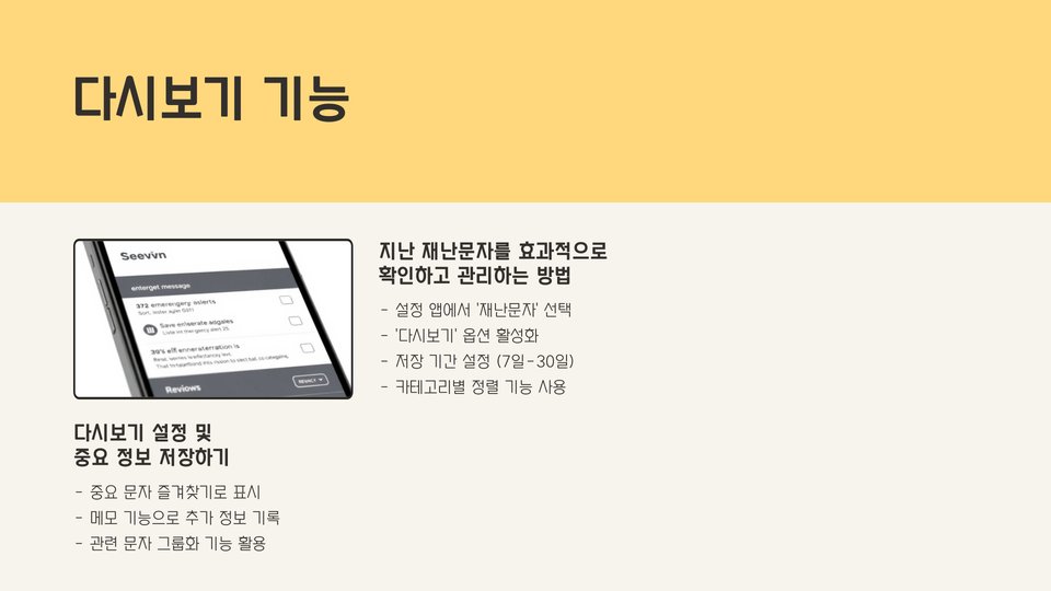 이렇게 하면, 사용자가 원하는 방식으로 알림을 받을 수 있게 되어 교통 사고나 자연재해가 발생했을 때 더 빠르게 대응할 수 있습니다. 설정을 마친 후, 반드시 자신의 변경 사항이 잘 적용되었는지 확인하는 과정이 필요합니다. 만약 변경사항이 적용되지 않거나 문제가 발생한다면, 아이폰을 재부팅하는 것도 좋은 방법입니다.