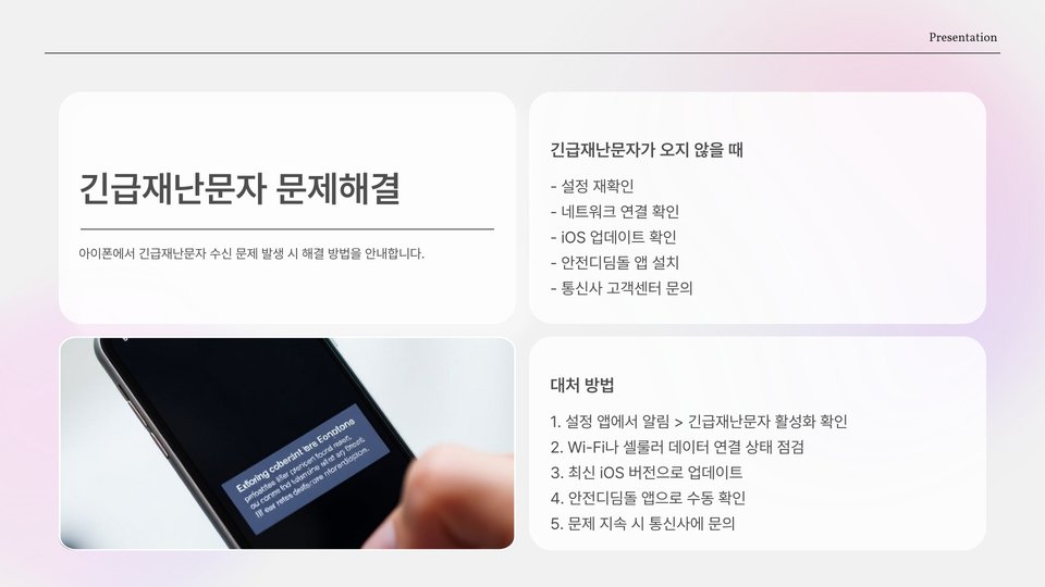 긴급재난문자는 재난 상황에서 국민에게 신속하게 정보를 전달하기 위한 시스템입니다. 이 문자 메시지는 자연재해, 인명 사고, 대형 화재 등 긴급한 상황에서 발송됩니다. 예를 들어, 강한 지진이 발생했을 때, 해당 지역 주민들에게 즉각적으로 안전 관련 정보를 제공하기 위해 사용됩니다. 이 시스템은 모든 모바일 기기에서 지원되며, 특히 아이폰 사용자들에게도 매우 유용합니다.