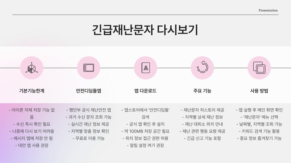 긴급재난문자는 재난 상황에서 국민에게 신속하게 정보를 전달하기 위한 시스템입니다. 이 문자 메시지는 자연재해, 인명 사고, 대형 화재 등 긴급한 상황에서 발송됩니다. 예를 들어, 강한 지진이 발생했을 때, 해당 지역 주민들에게 즉각적으로 안전 관련 정보를 제공하기 위해 사용됩니다. 이 시스템은 모든 모바일 기기에서 지원되며, 특히 아이폰 사용자들에게도 매우 유용합니다.