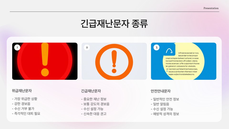 - 긴급재난문자는 재난 상황에서 중요한 정보를 전달합니다.