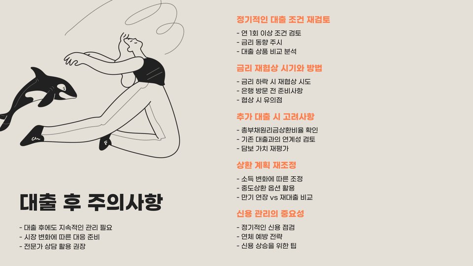 - 이자율, 상환 기간, 대출 한도를 신중히 고려해야 합니다.