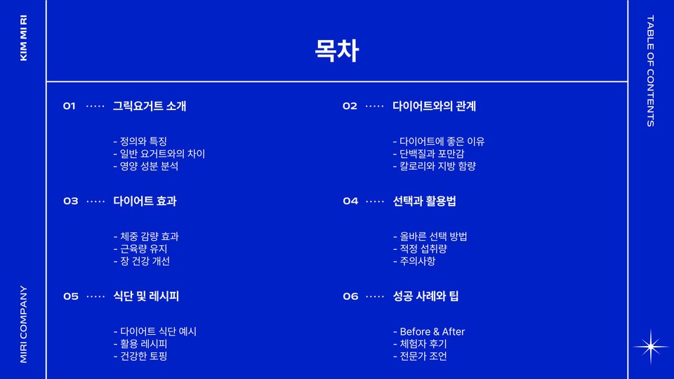 그릭요거트 다이어트는 고단백, 저칼로리 식품의 특성 덕분에 많은 다이어터들에게 효과적인 방법으로 각광받고 있습니다. 요거트를 활용한 다양한 레시피를 통해 식사에 재미를 더하고, 각종 영양소를 챙길 수 있는 방법을 제공하는 것이 이 다이어트의 매력입니다. 지속적인 노력을 통해 체중 감량과 함께 건강한 생활 습관을 기를 수 있기를 바랍니다.