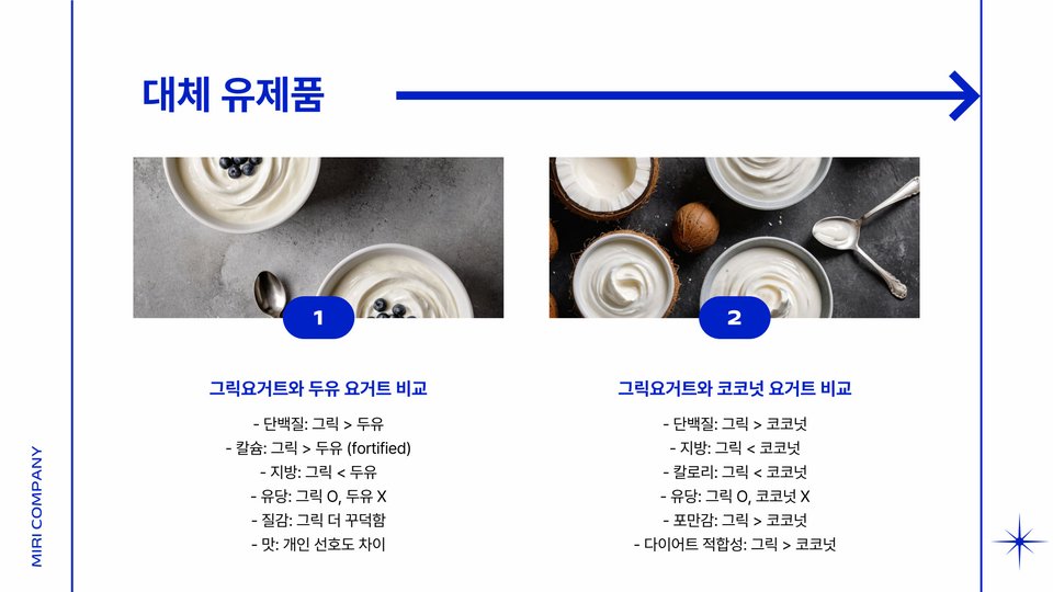 그릭 요거트는 일반 요거트보다 단백질 함량이 높고, 지방이 적은 것이 특징입니다. 이는 근육량을 증가시키고, 식욕을 줄이는 데 도움을 줍니다. 그릭 요거트는 또한 다양한 비타민과 미네랄이 포함되어 있어 영양소 섭취에 유리합니다. 특히, 그릭 요거트는 다양한 요리에 활용할 수 있어 식단에 다양성을 부여합니다.