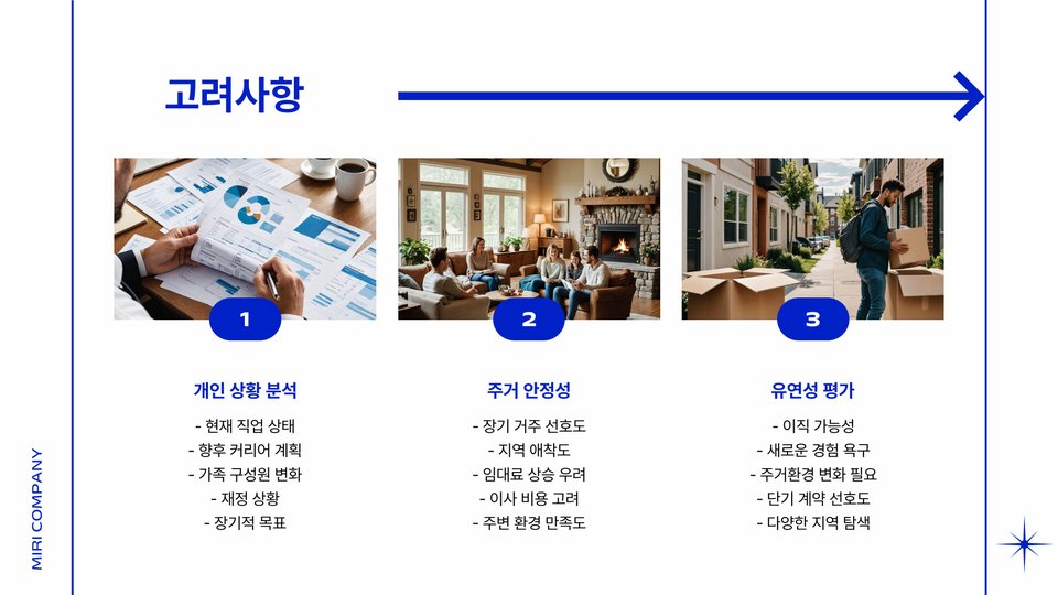 세 번째로는 전세와 비교한 경제성 문제입니다. 장기간 주거할 것을 고려할 경우, 전세로의 전환이 경제적으로 더 이익일 수 있습니다. 이러한 점 역시 신중하게 따져봐야 합니다.