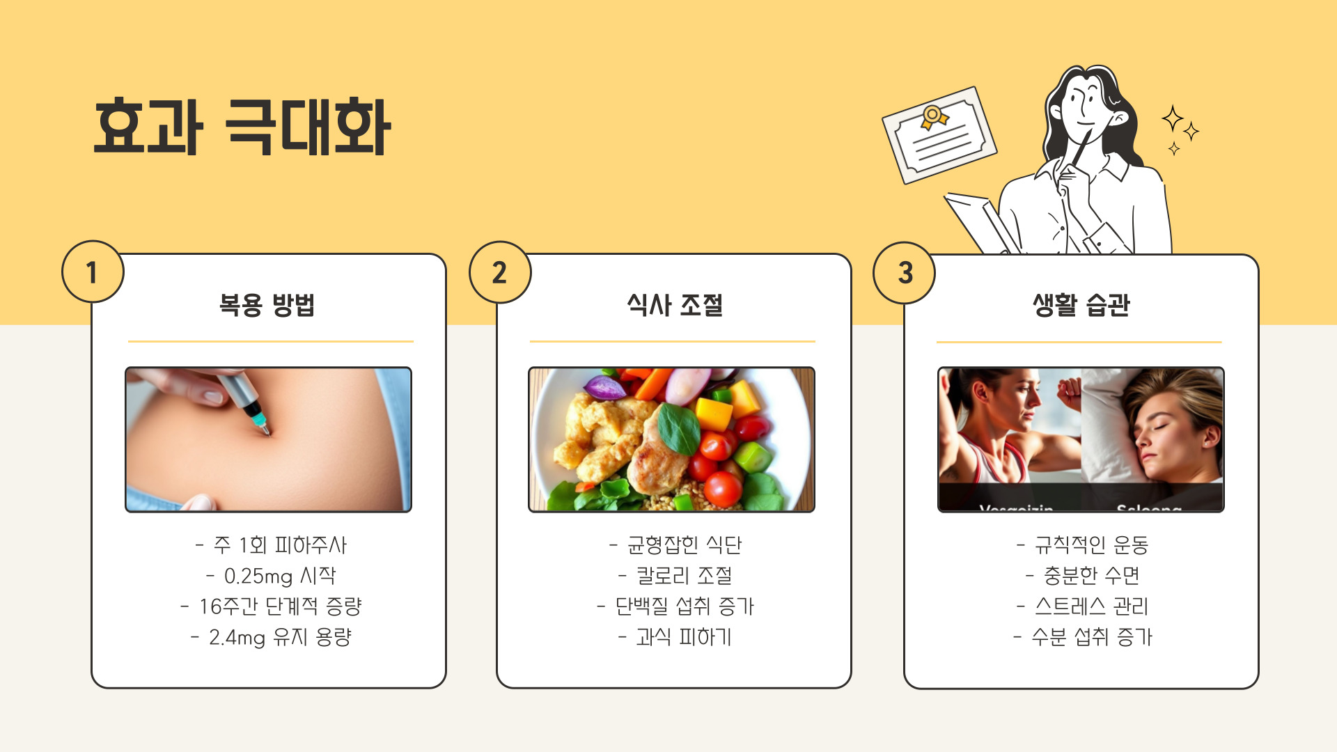 위고비 처방의 효과를 높이기 위해서는 생활 습관, 운동, 정신적 건강, 전문가 상담 등 여러 요소를 고려해야 합니다. 이러한 팁들을 통해 위고비의 효과를 극대화하고, 건강한 삶을 영위할 수 있습니다. 올바른 방법으로 위고비를 사용하면 더 나은 결과를 얻을 수 있습니다.