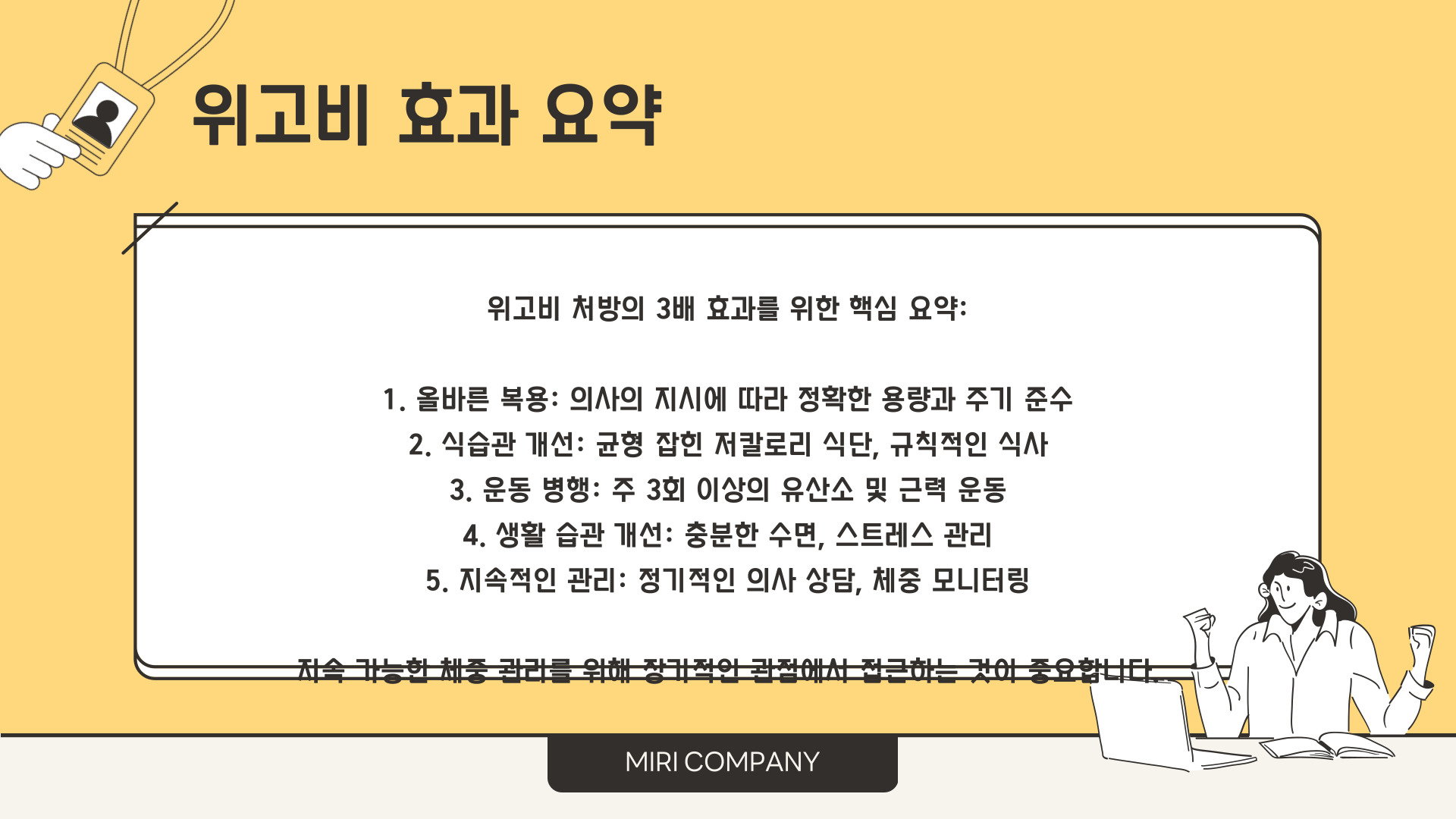 위고비 처방의 효과를 높이기 위해서는 생활 습관, 운동, 정신적 건강, 전문가 상담 등 여러 요소를 고려해야 합니다. 이러한 팁들을 통해 위고비의 효과를 극대화하고, 건강한 삶을 영위할 수 있습니다. 올바른 방법으로 위고비를 사용하면 더 나은 결과를 얻을 수 있습니다.