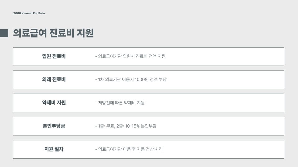 - 의료급여를 통해 다양한 의료 서비스를 받을 수 있습니다.