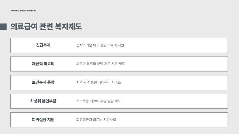 - 의료급여를 통해 다양한 의료 서비스를 받을 수 있습니다.