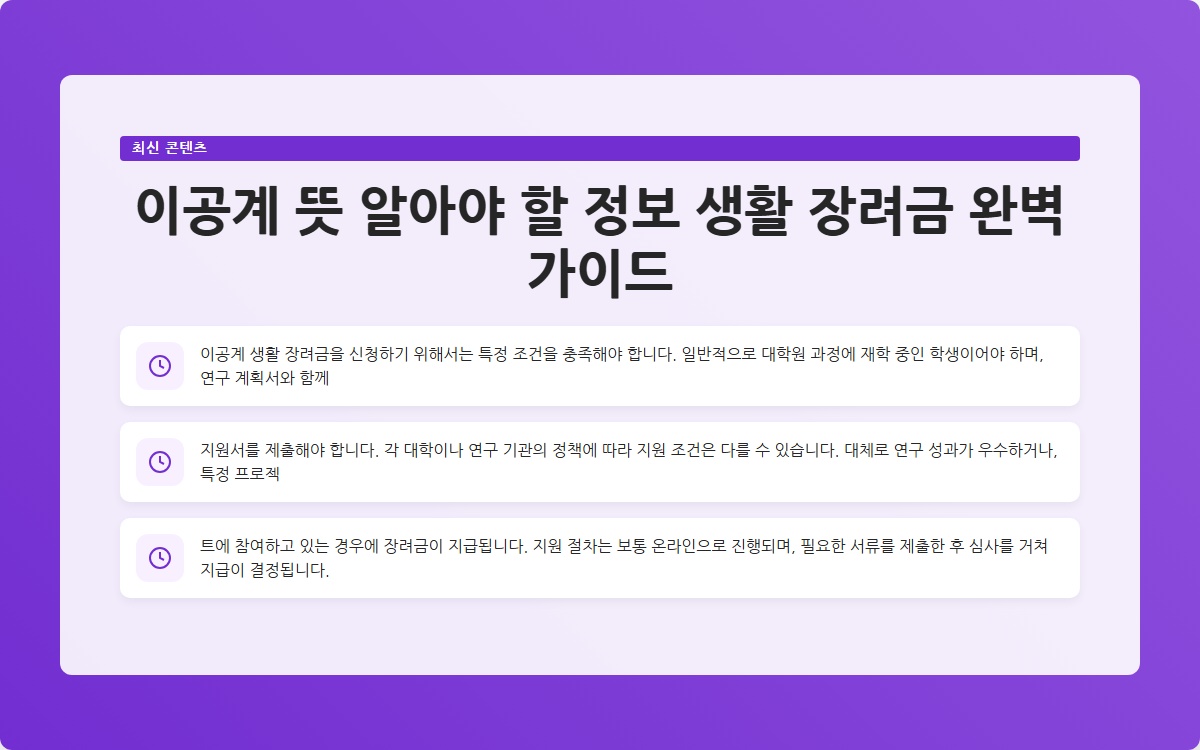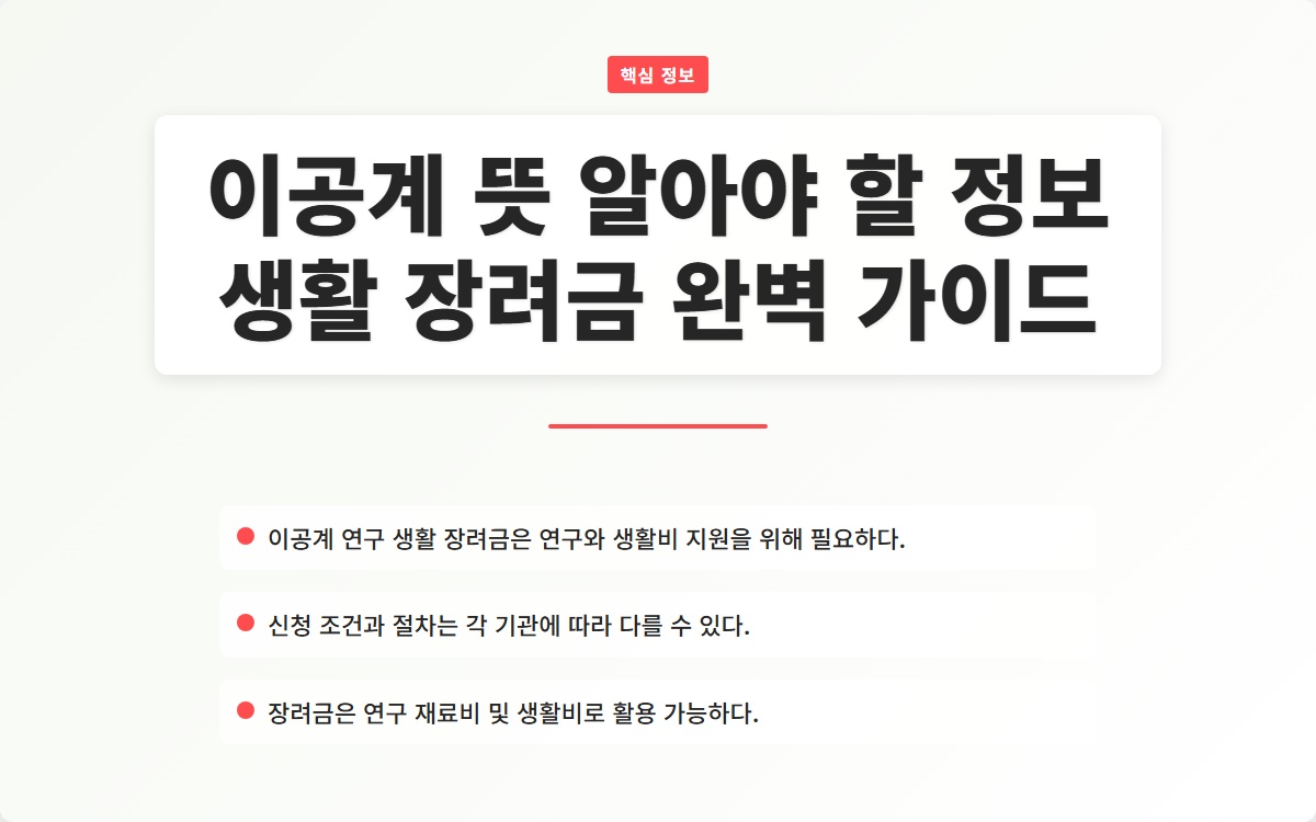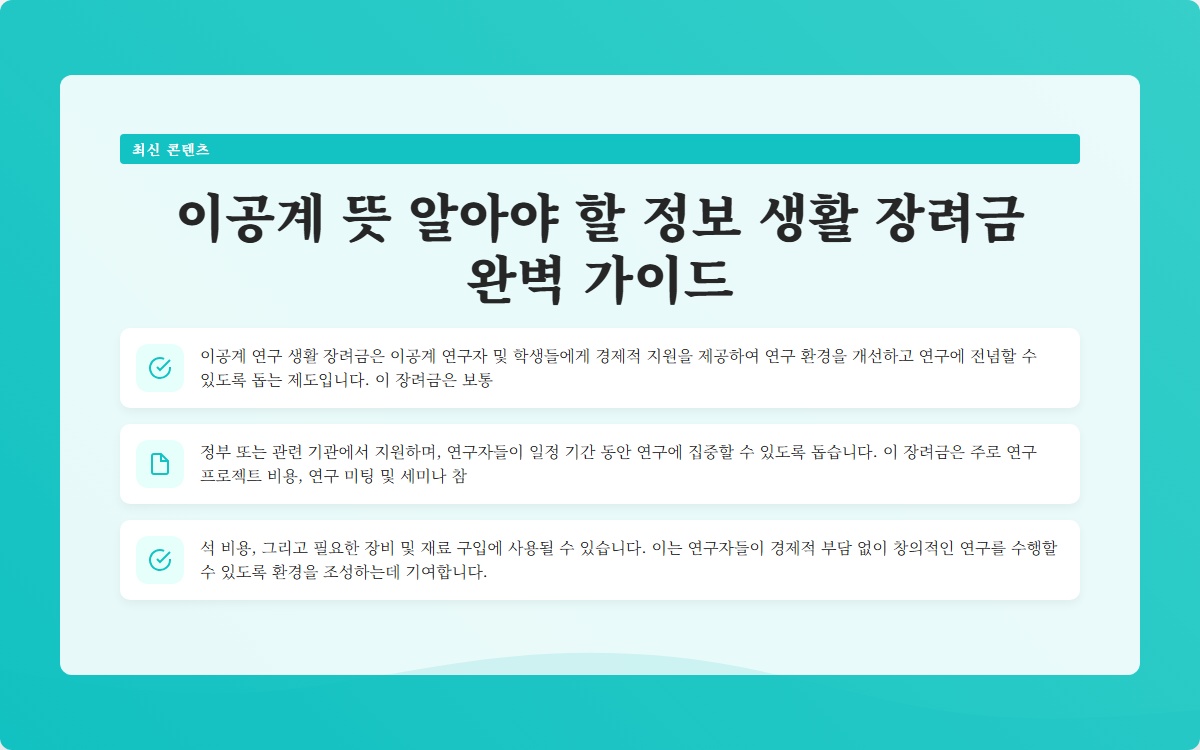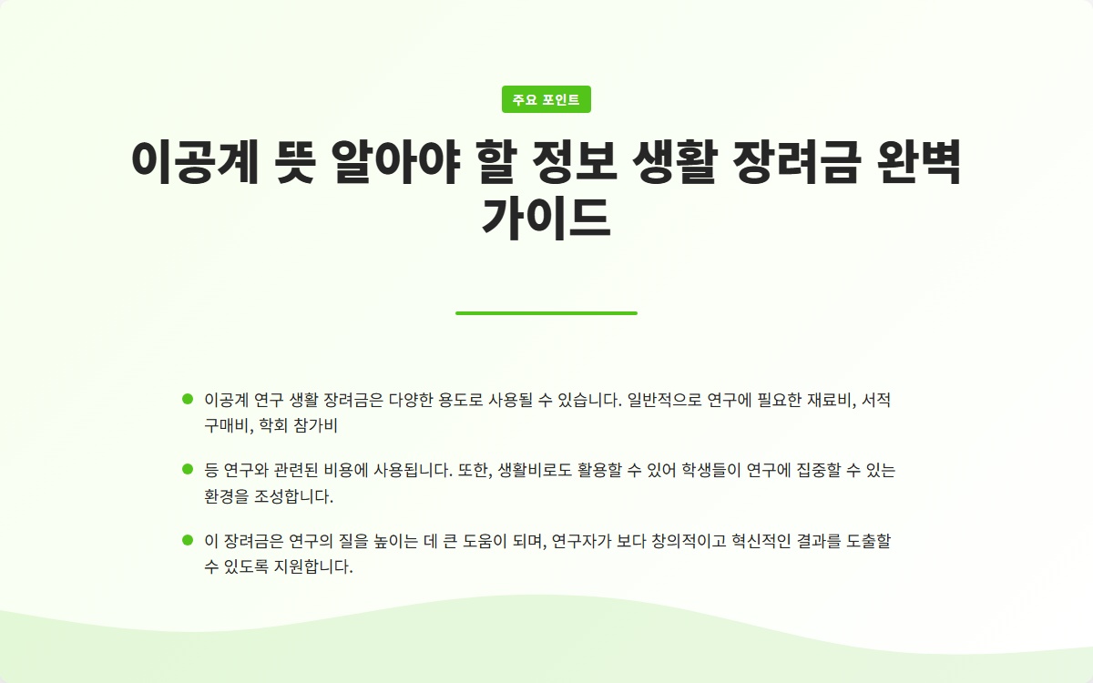 Tags: 이공계, 연구 생활, 장려금, 대학원, 연구 지원, 생활비, 신청 조건, 연구 재료비, 연구 성과, 경제적 지원
