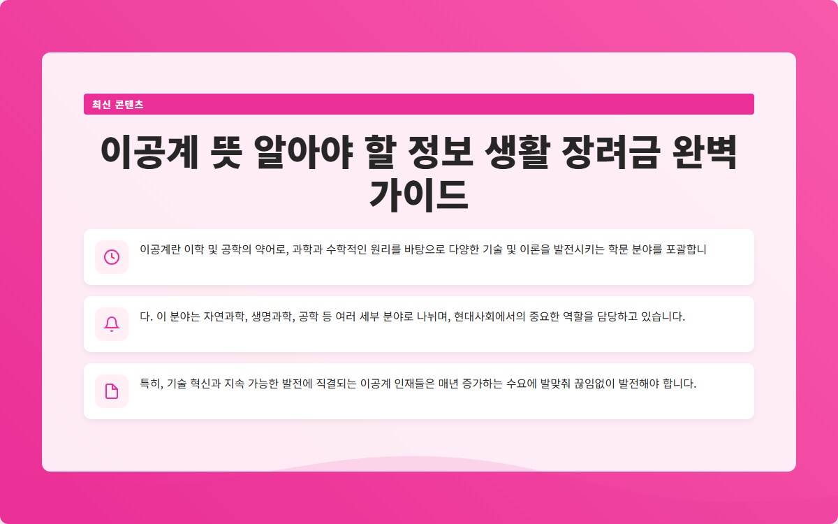 이공계 뜻 알아야 할 정보 생활 장려금 완벽 가이드