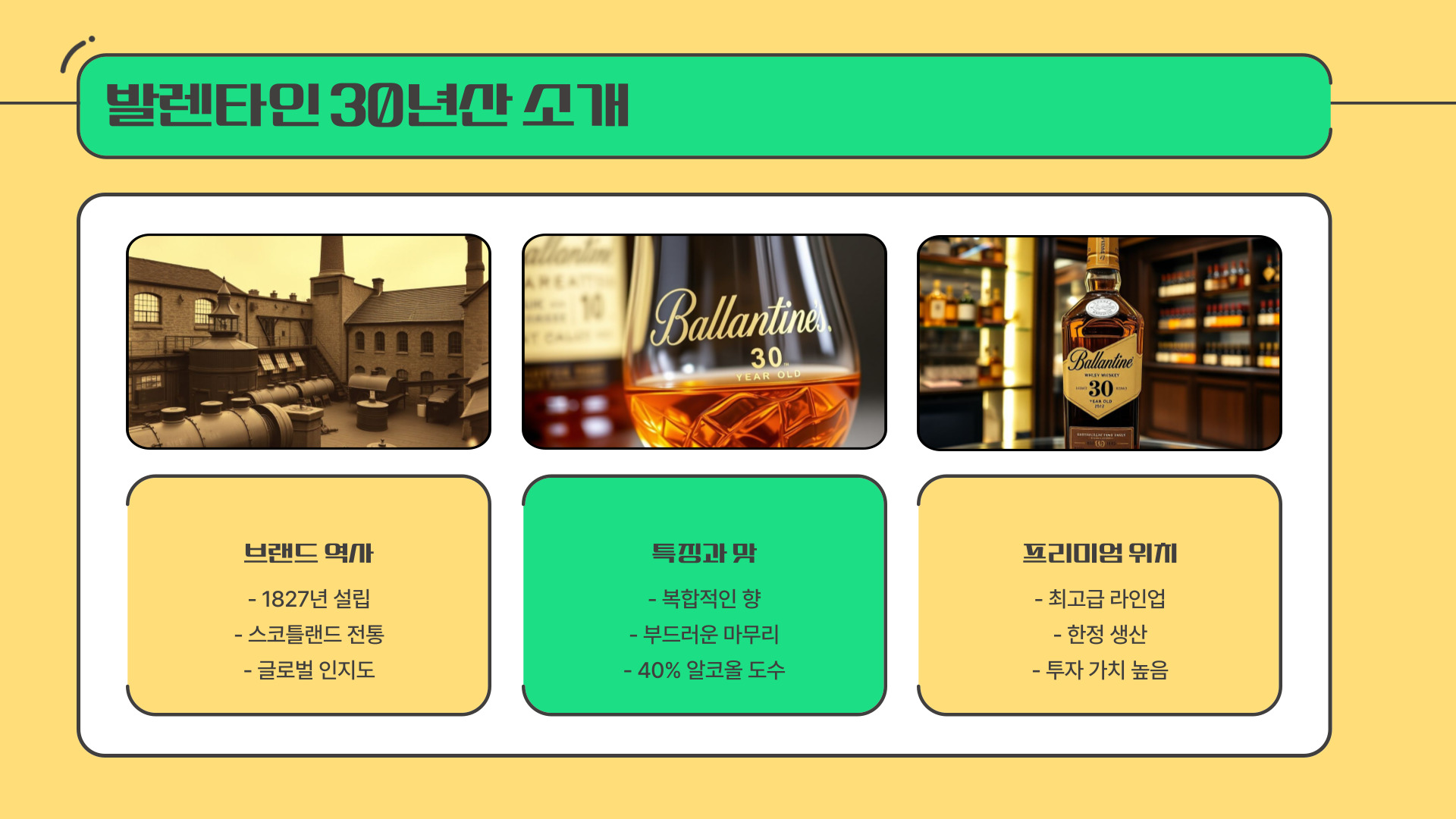 - 일본 발렌타인 30년산은 세계적으로 인기 있는 고급 위스키