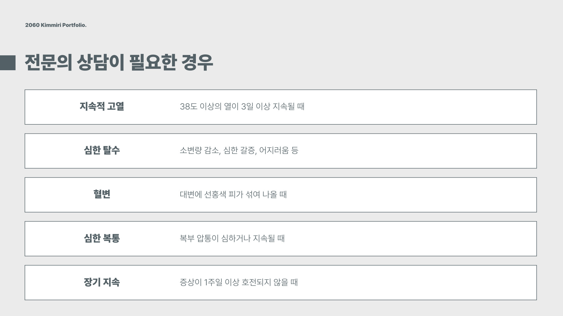| 복통, 설사, 구토 | 수분 보충, 약물 치료 | 손 씻기, 안전한 음식 섭취 |