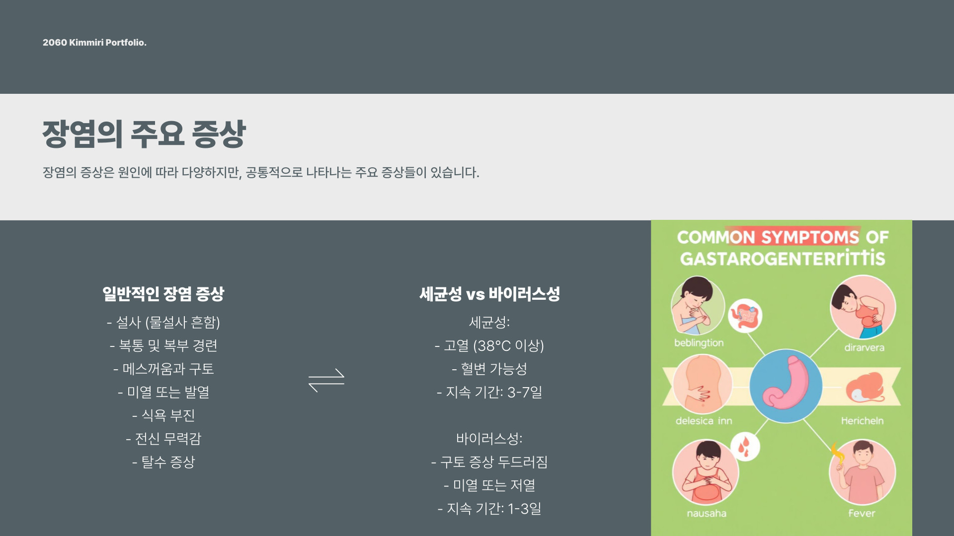 - 급성 장염은 48시간 이내에 증상 완화 가능