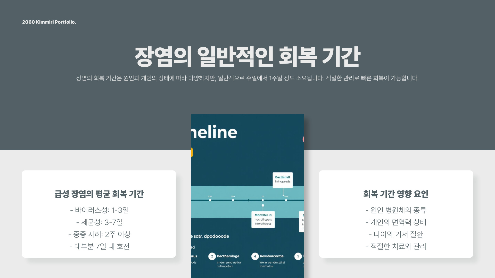 - 장염 회복은 평균 1-2주 간 걸립니다.