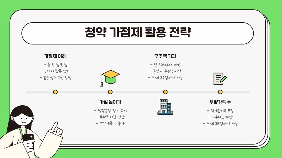 중요 팁: 청약 가점은 시간이 지날수록 쌓이므로, 가능하면 빨리 가입하고 저축을 시작하세요!