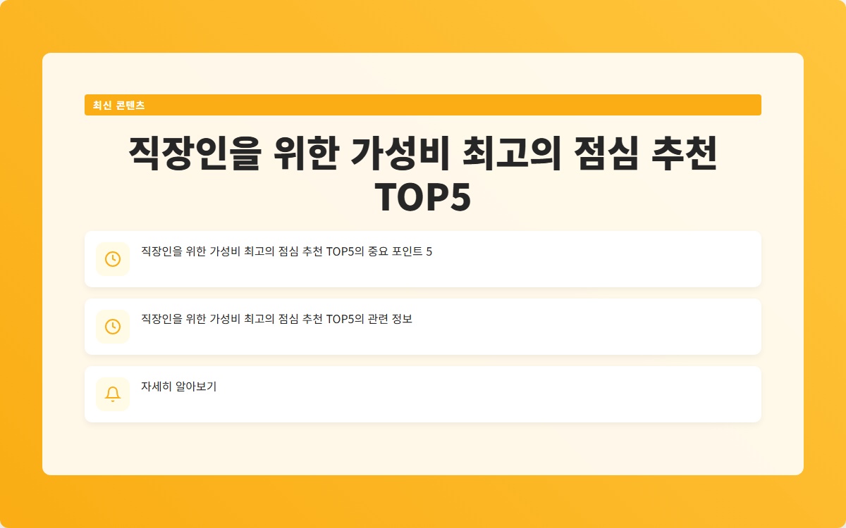 직장인을 위한 가성비 최고의 점심 추천 TOP5