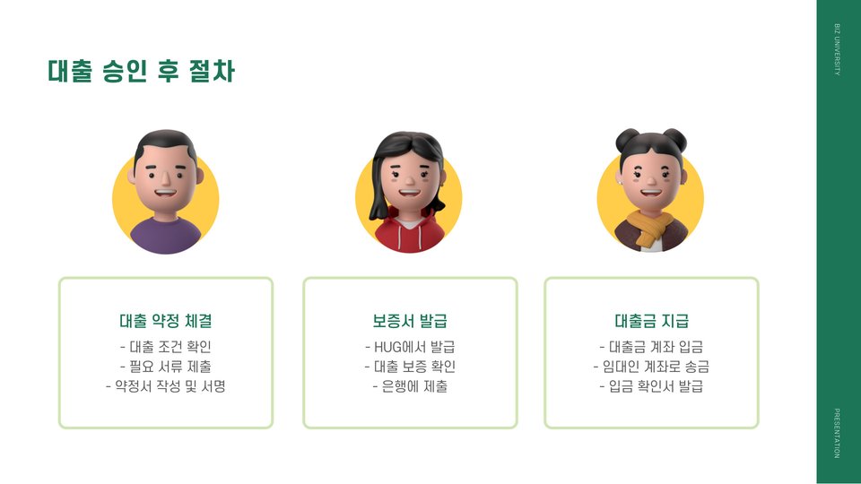 청년버팀목전세대출은 신청 절차가 비교적 간단하여 신청 후 빠르게 대출을 받을 수 있는 장점이 있습니다. 대출 신청은 주택금융공사 홈페이지에서 온라인으로 가능하며, 필요한 서류를 제출한 후 검토를 거쳐 승인 여부가 결정됩니다. 신청 서류로는 신분증, 소득증명서, 자산조회서 등이 필요합니다.