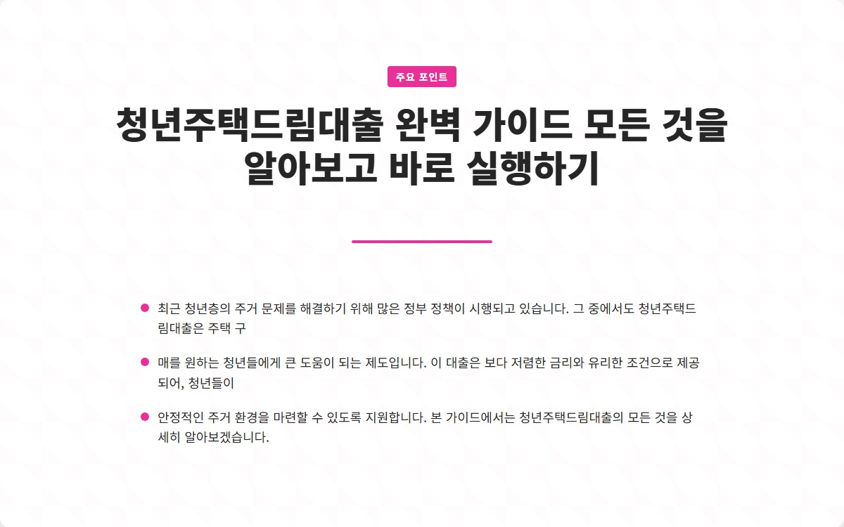 청년주택드림대출 완벽 가이드