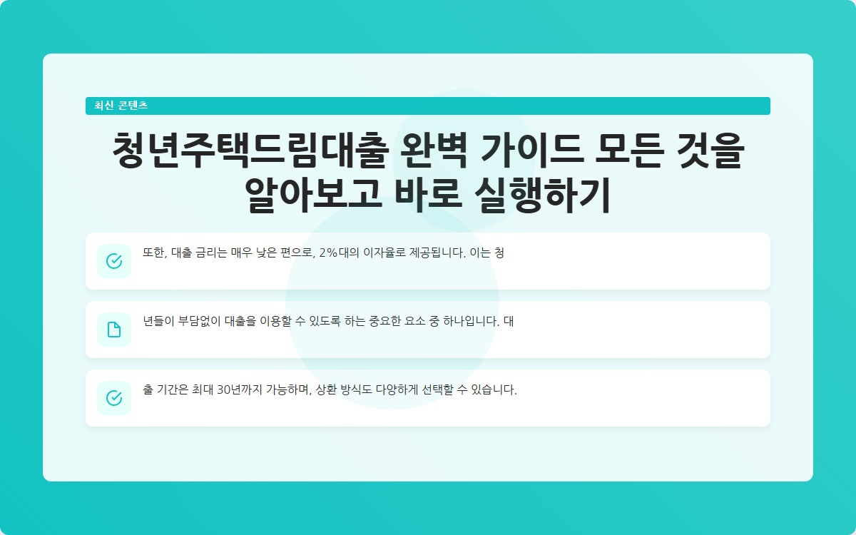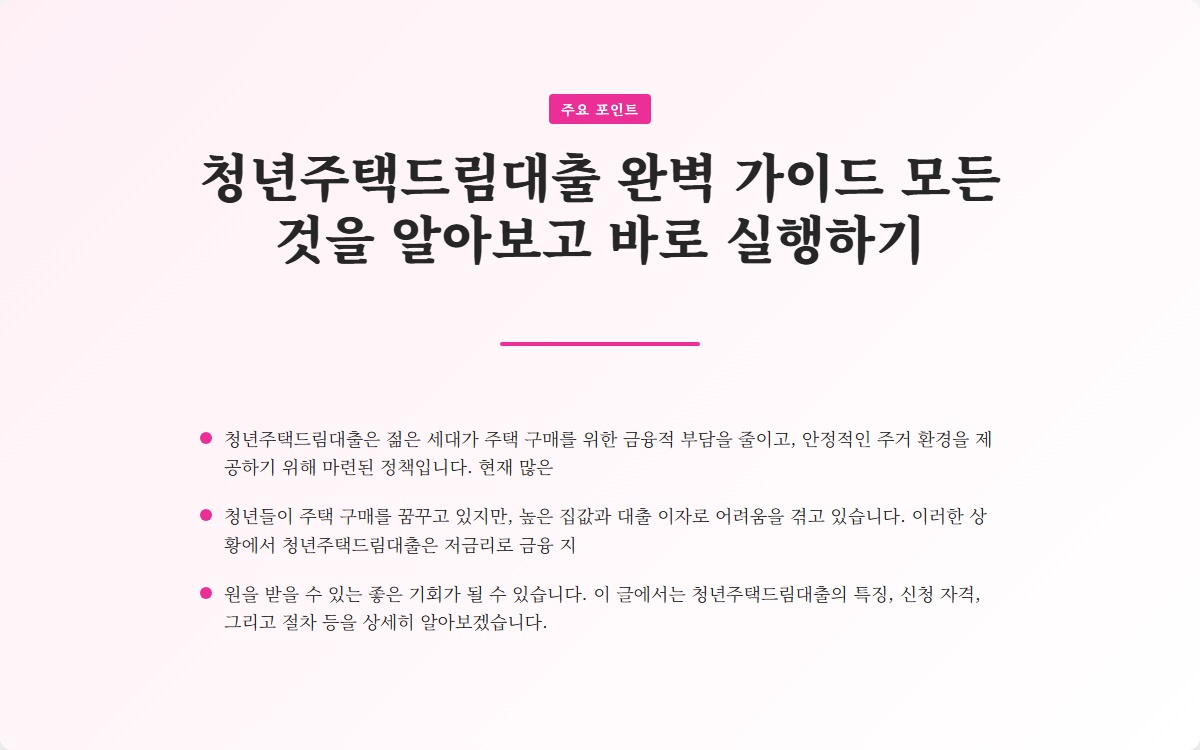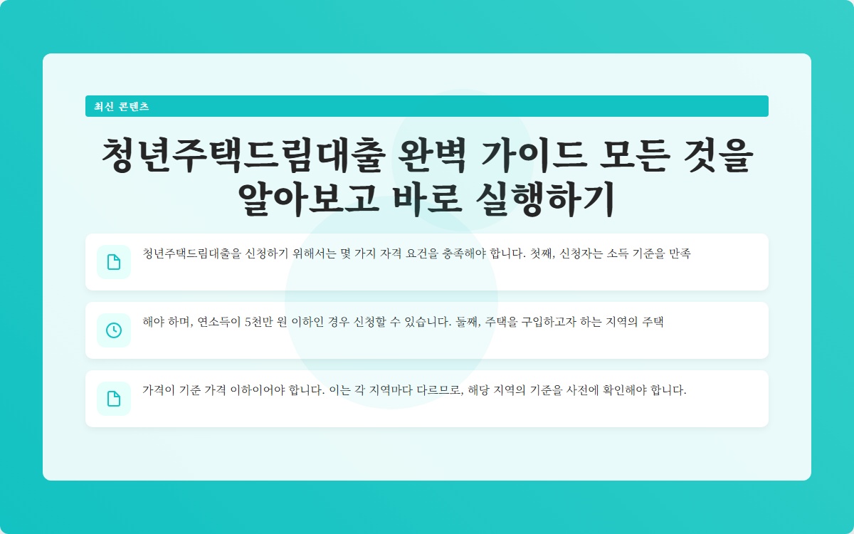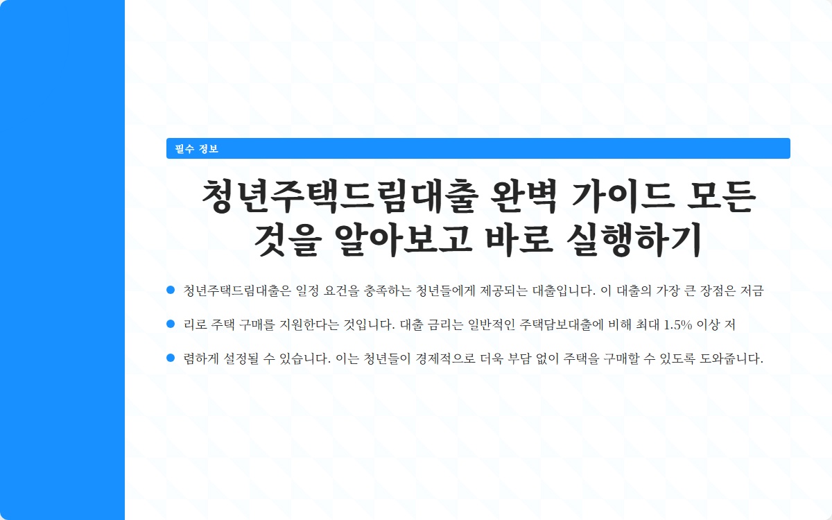청년주택드림대출 완벽 가이드 모든 것을 알아보고 바로 실행하기