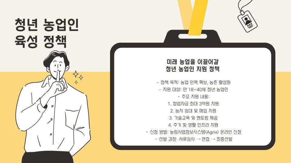 - 청년마이스터 프로그램: 전문 기술 인력을 양성하기 위한 프로그램입니다.