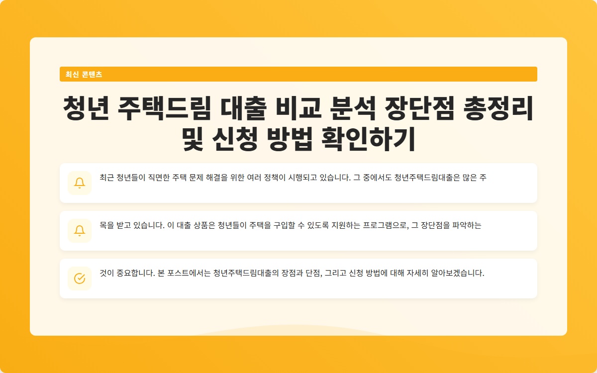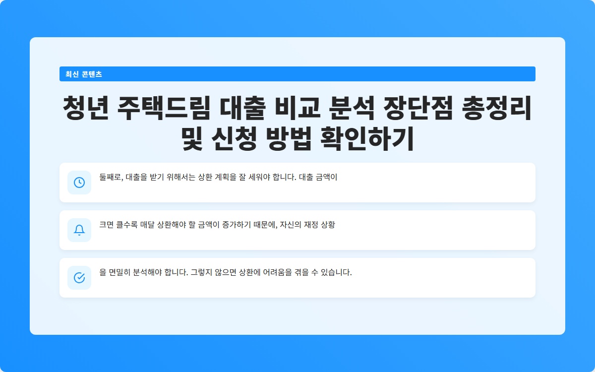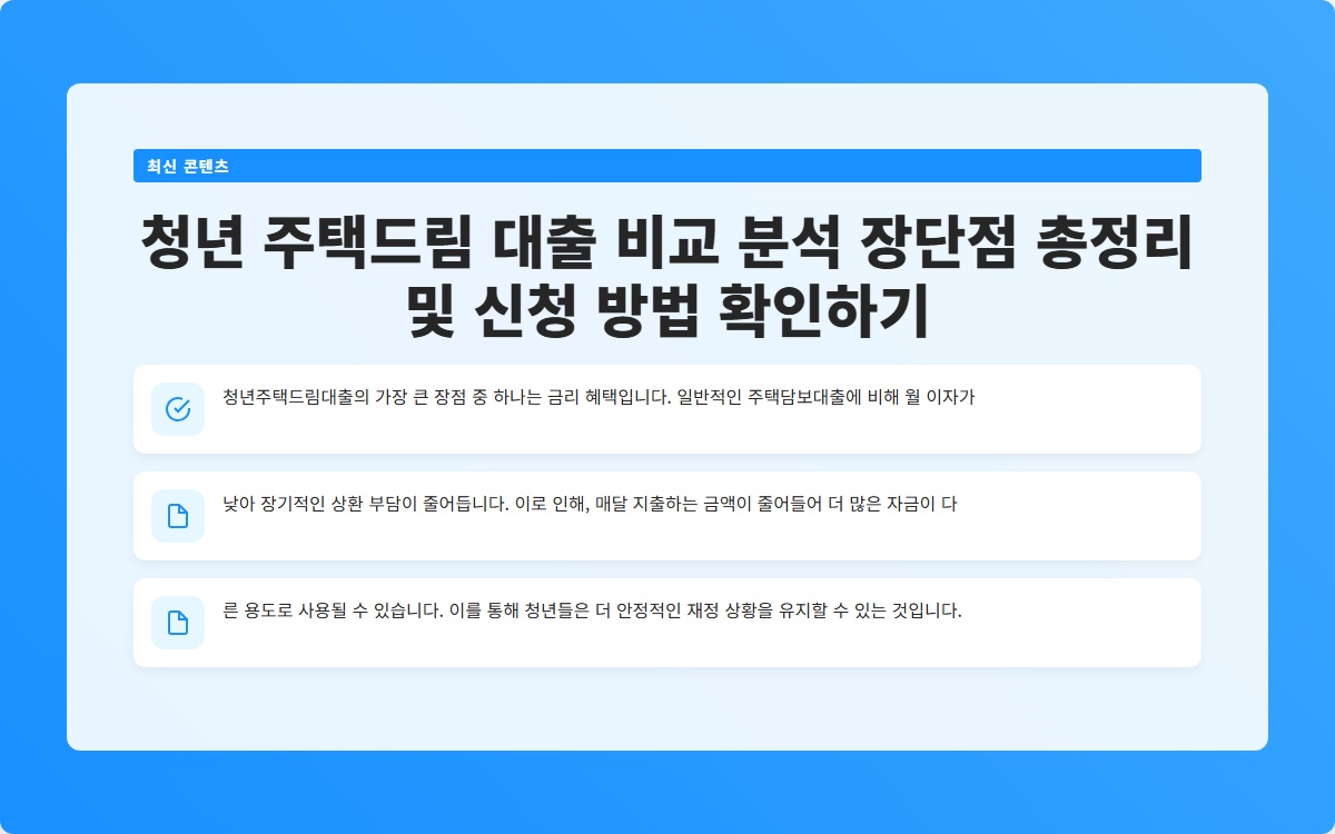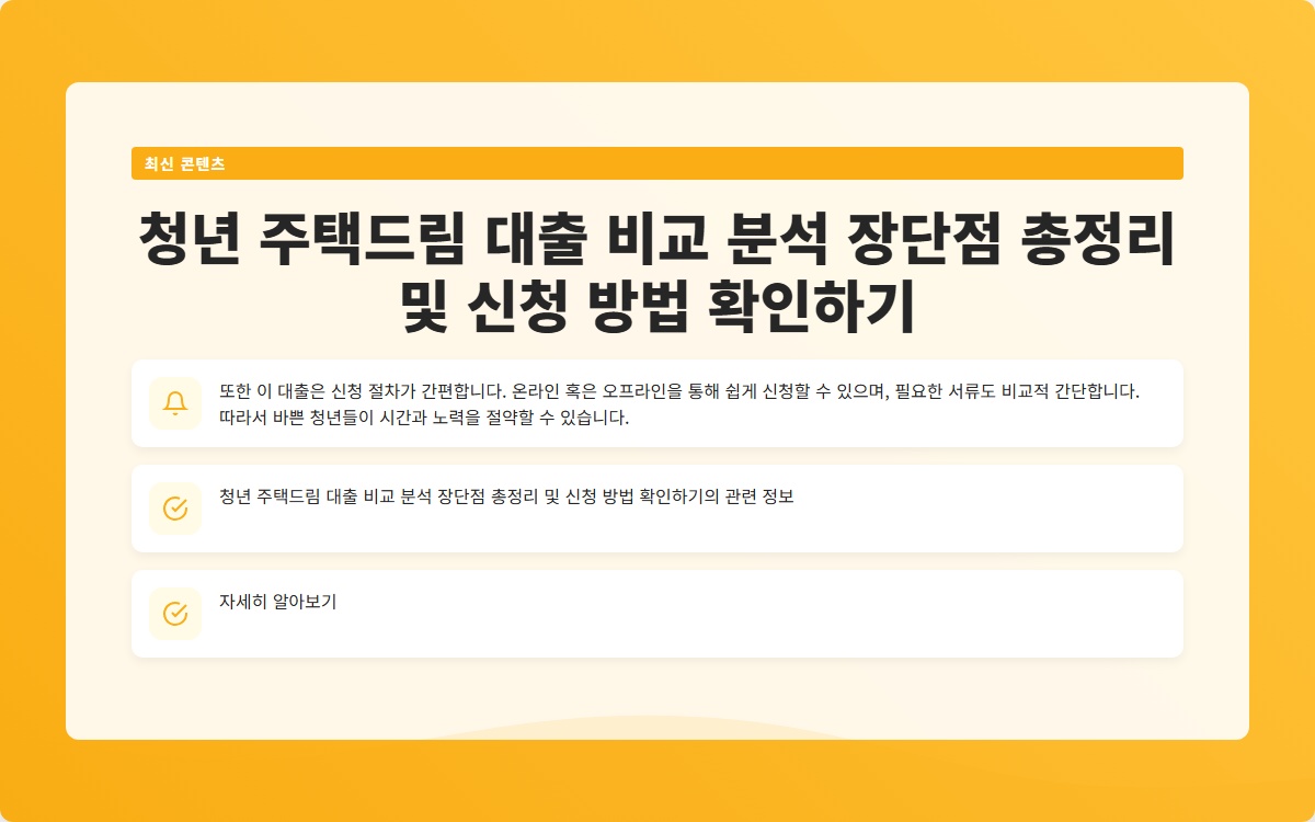 청년 주택드림 대출 비교 분석 장단점 총정리 및 신청 방법 확인하기