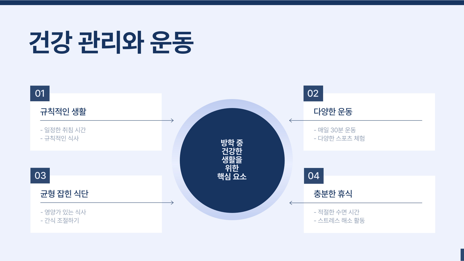 방학 동안에는 체력을 키우는 것도 잊지 말아야 합니다. 운동은 신체뿐만 아니라 정신 건강에도 긍정적인 영향을 미칩니다. 아이가 좋아하는 스포츠를 정해주고, 함께 운동하는 시간을 가지세요. 예를 들어, 자전거 타기, 수영, 축구 등이 좋은 선택입니다.