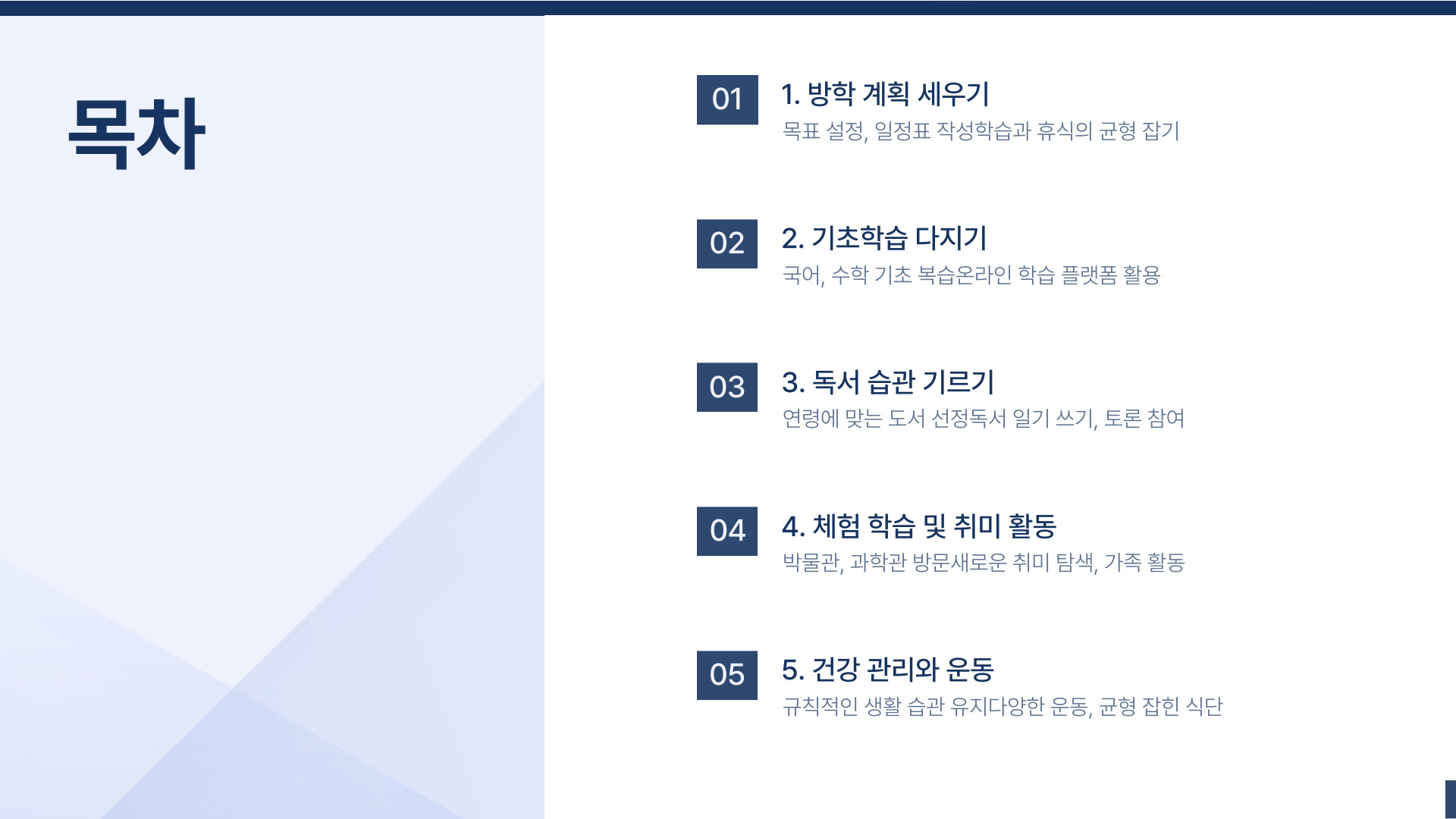 초등학생 방학기간 활용법 5단계