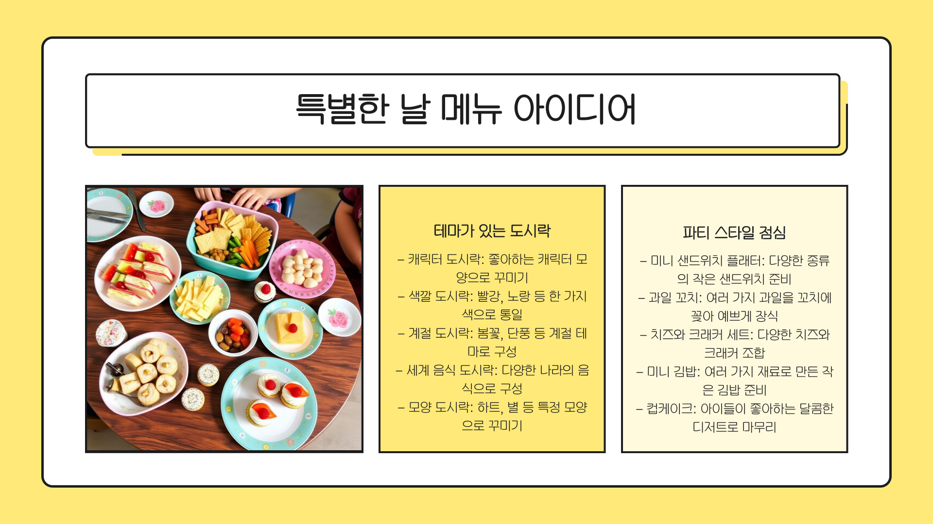 방학이 다가오면 많은 부모님들이 초등학생 자녀를 위해 점심 메뉴를 고민하게 됩니다. 특히, 방학 동안 아이들이 건강하고 맛있는 음식을 먹도록 하는 것이 중요합니다. 이번 포스트에서는 아이들이 좋아하면서도 영양가가 높은 점심 메뉴 3가지를 소개할 예정입니다. 각 메뉴에는 간단한 조리법과 영양 정보도 포함되어 있으니, 참고하시기 바랍니다.