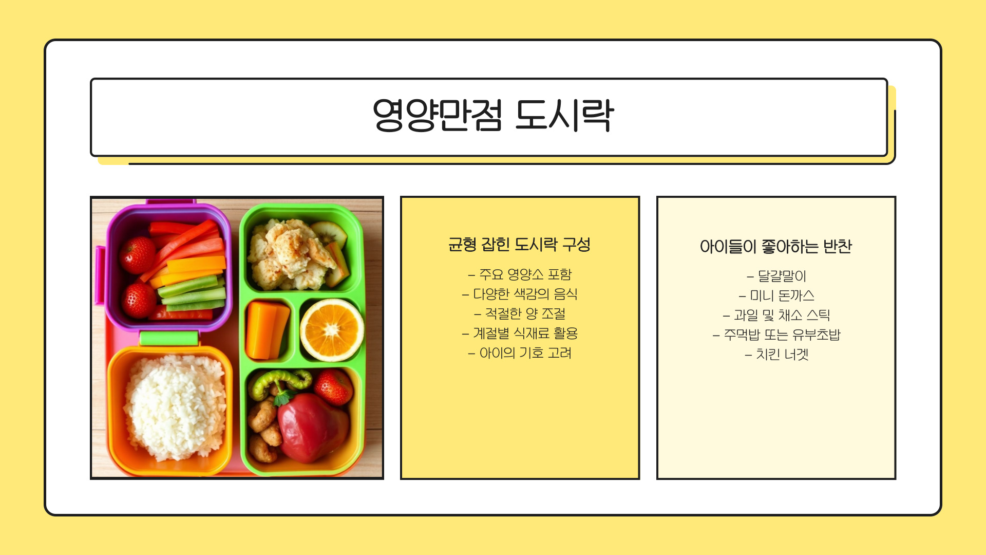 - 아이들이 좋아하는 메뉴로 구성