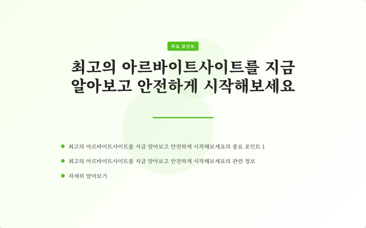 요즘 아르바이트를 찾는 것이 쉽지 않은데, 특히 안전하고 신뢰할 수 있는 사이트를 찾는 것이 중요합니다. 당신도 그런 고민을 하고 있지 않나요? 다양한 아르바이트 사이트가 존재하지만, 어떤 것이 가장 효과적이고 안전한지 궁금하시죠? 지금 바로 최고의 아르바이트 사이트를 알아보고, 안전하게 시작해보세요!