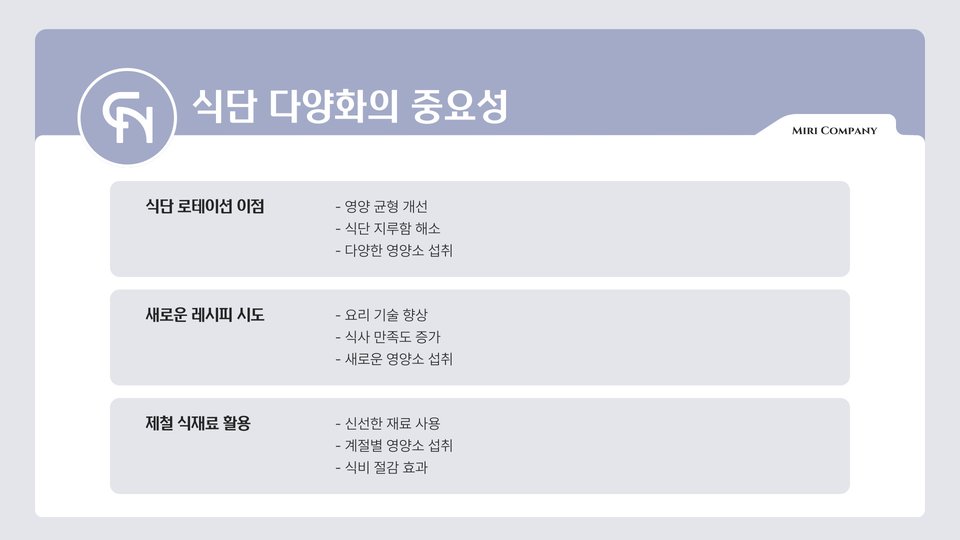 이렇게 다이어트 중에도 맛있고 건강하게 즐길 수 있는 점심 메뉴를 소개했습니다. 각 메뉴는 간편하게 만들 수 있으며, 영양 면에서도 뛰어난 선택지입니다. 점심 식사로 이 메뉴들을 시도해보며, 건강한 다이어트 생활을 이어가세요. 적절한 영양 섭취와 함께 건강한 다이어트를 위해 노력하는 것이 중요합니다.
