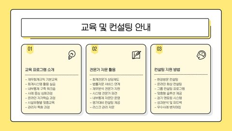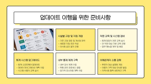 이와 함께, 회계 담당자들이 새로운 시스템에 익숙해질 수 있도록 전문적인 교육 프로그램도 운영되고 있습니다. 이러한 프로그램은 직원들이 최신 회계 기술을 배우고 활용할 수 있는 기회를 제공합니다.