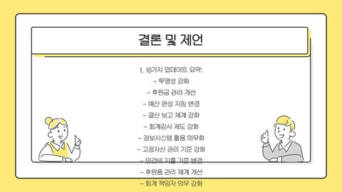 이상의 10가지 업데이트는 사회복지시설의 재무회계규칙을 보다 나은 방향으로 이끌어 줄 것입니다. 이러한 변화에 발맞춰 각 시설은 새로운 규칙을 적극적으로 반영하여 운영의 효율성을 높여야 합니다.