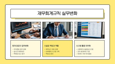 가장 중요한 변화 중 하나는 재무보고의 투명성을 높이기 위한 기준이 강화되었다는 점입니다. 모든 사회복지시설은 재무제표를 작성함에 있어 정확성과 신뢰성을 확보해야 하며, 이를 위해 외부 감사의 필요성이 강조되고 있습니다. 이러한 변화는 사회복지시설의 신뢰도를 높이는 데 기여할 것입니다.