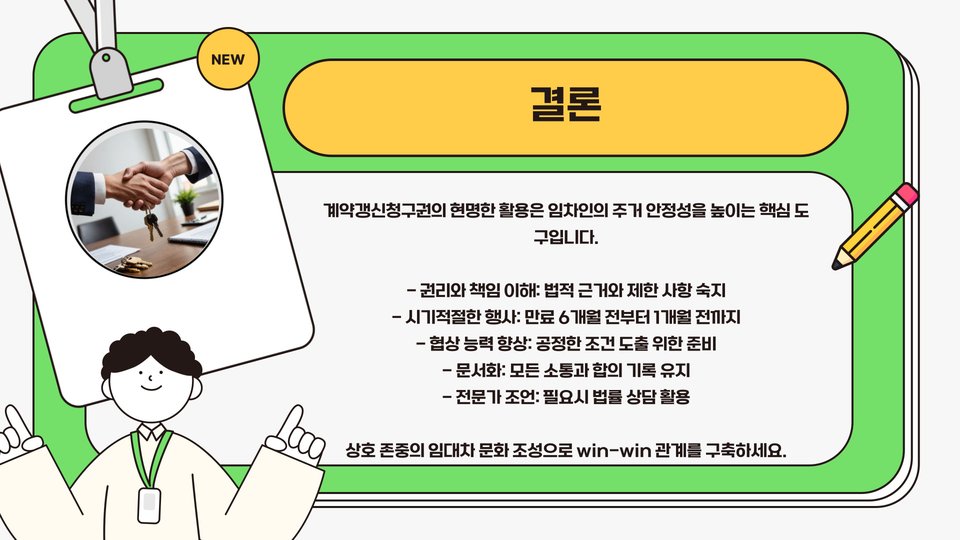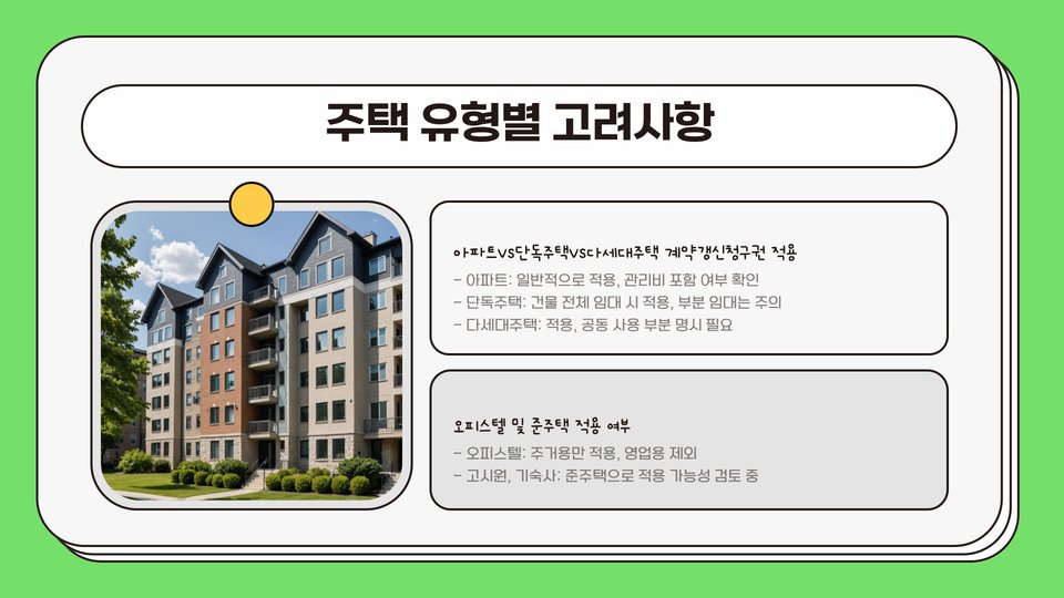 중요 팁: 계약갱신청구권 행사 전에 법률 상담을 받는 것이 좋습니다.