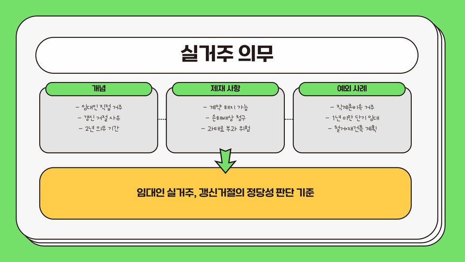 - 계약갱신청구권은 세입자의 주거 안정성 보장