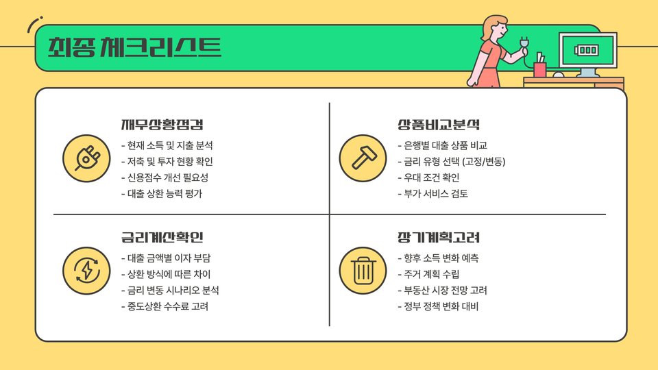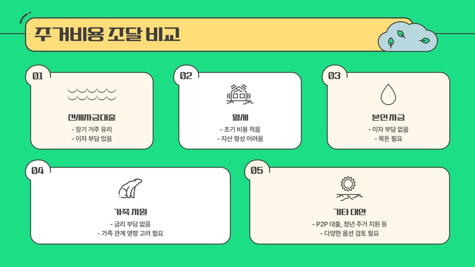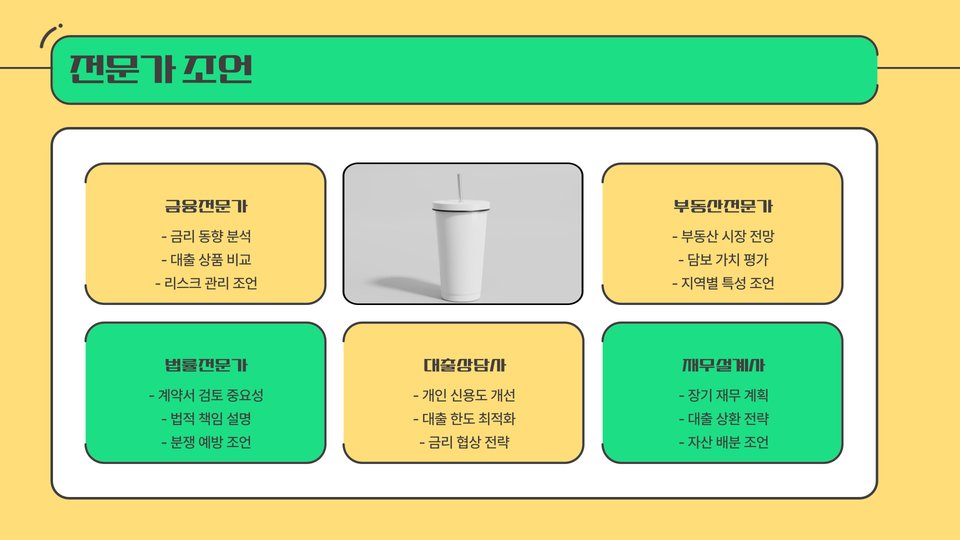 - 각 금융기관의 상품을 비교하여 최적의 조건을 찾아야 합니다.