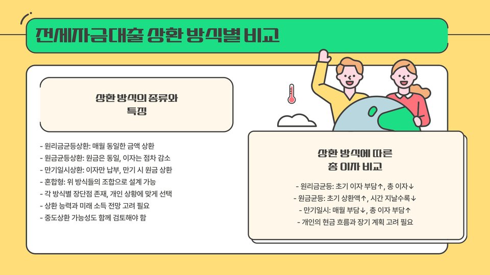 - 상환 방식에 따라 월 상환액이 달라지므로 신중한 선택이 필요합니다.