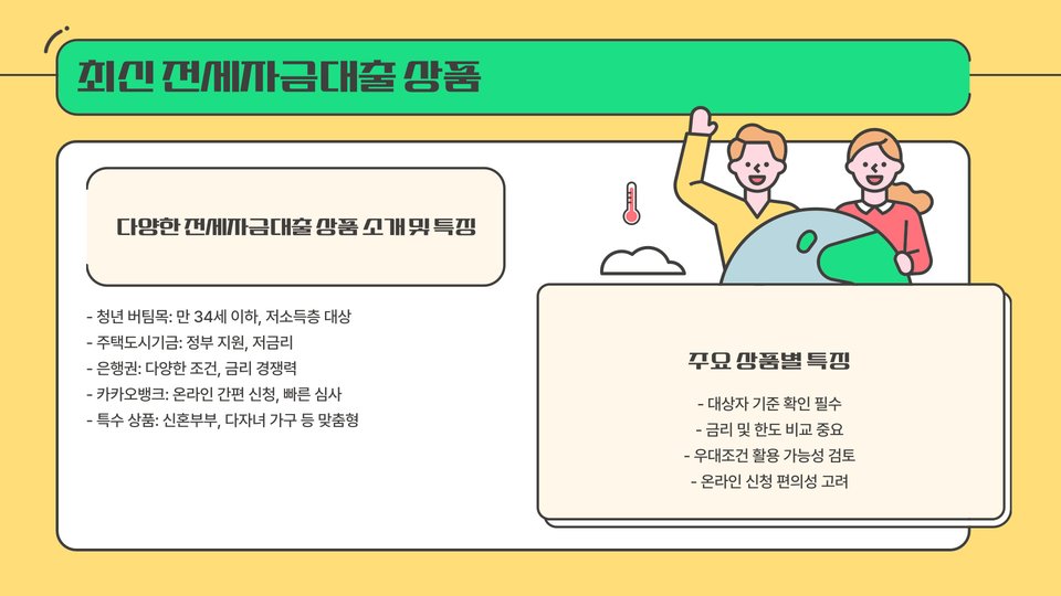 - 전세자금대출은 다양한 금리와 조건이 있으므로 신중한 선택이 필요합니다.