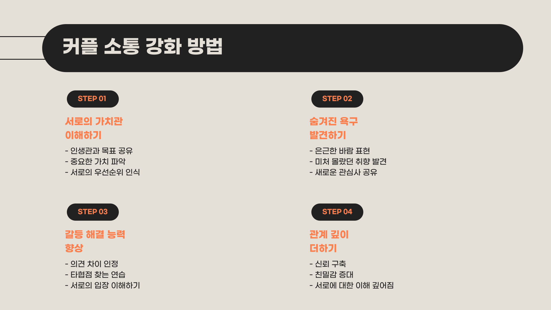커플 관계를 더욱 깊게 만들기 위해서는 다음과 같은 질문들을 시도해보세요: