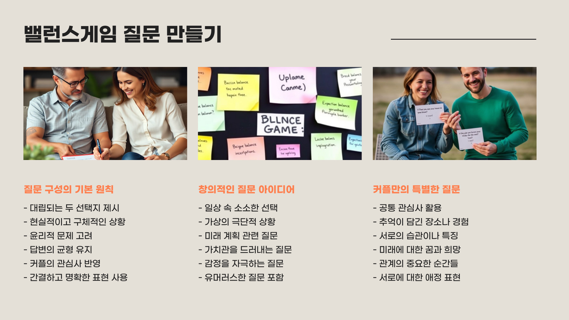 Tags: 커플, 밸런스게임, 질문, 소통, 관계, 감정, 이해, 게임, 취향, 즐거운 시간