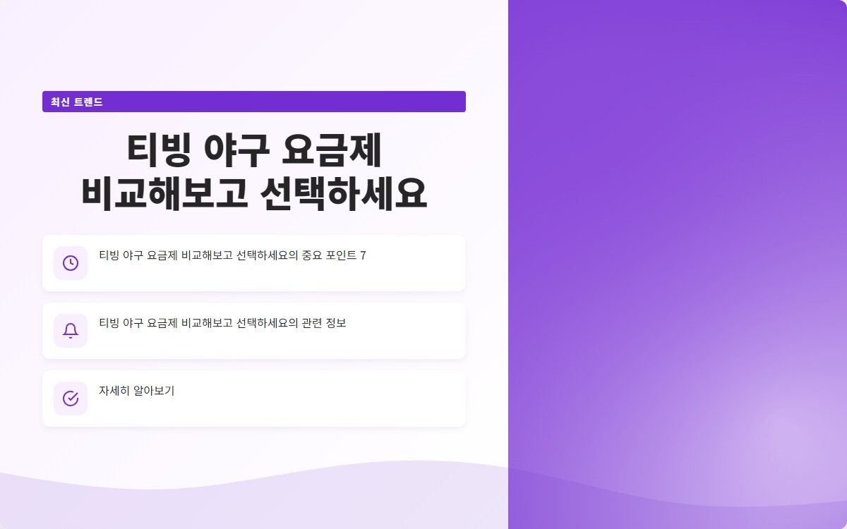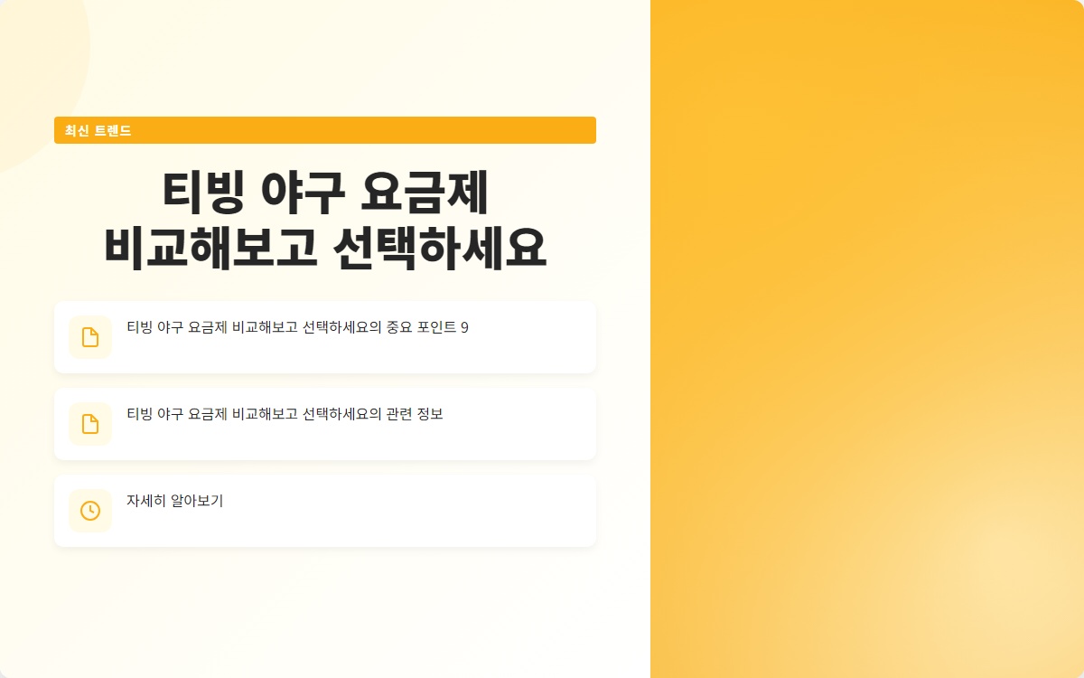 티빙의 야구 요금제는 다양한 선택지를 제공합니다. 가장 주목해야 할 요금제는 다음과 같습니다: