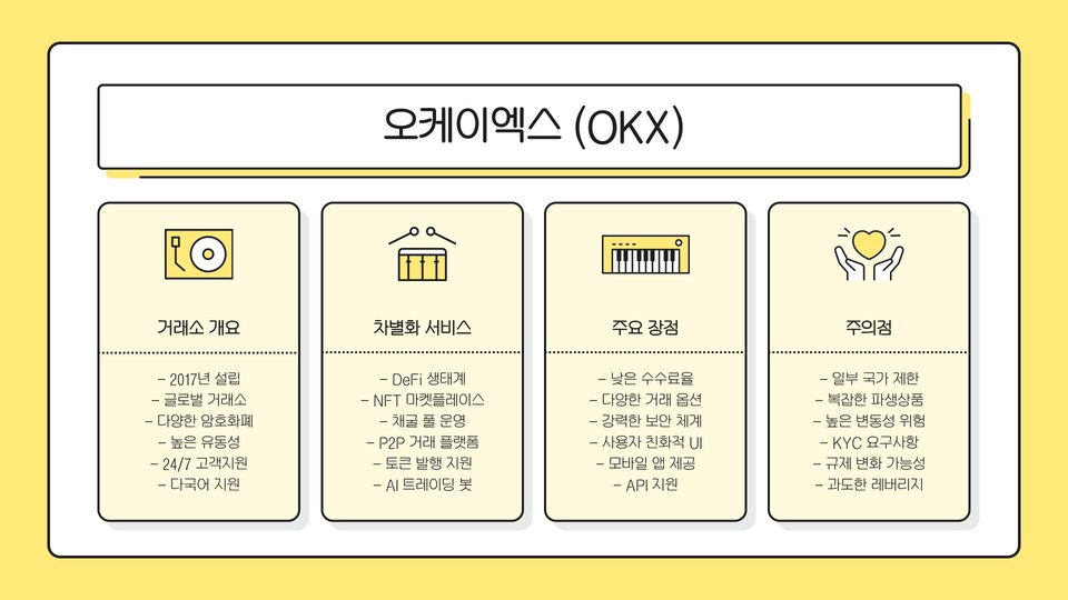 KuCoin은 다양한 신규 암호화폐를 빠르게 상장하는 거래소로 유명합니다. 다양한 암호화폐를 원활하게 거래할 수 있는 플랫폼을 제공하며, 사용자 친화적인 인터페이스로 초보자도 쉽게 접근할 수 있습니다.