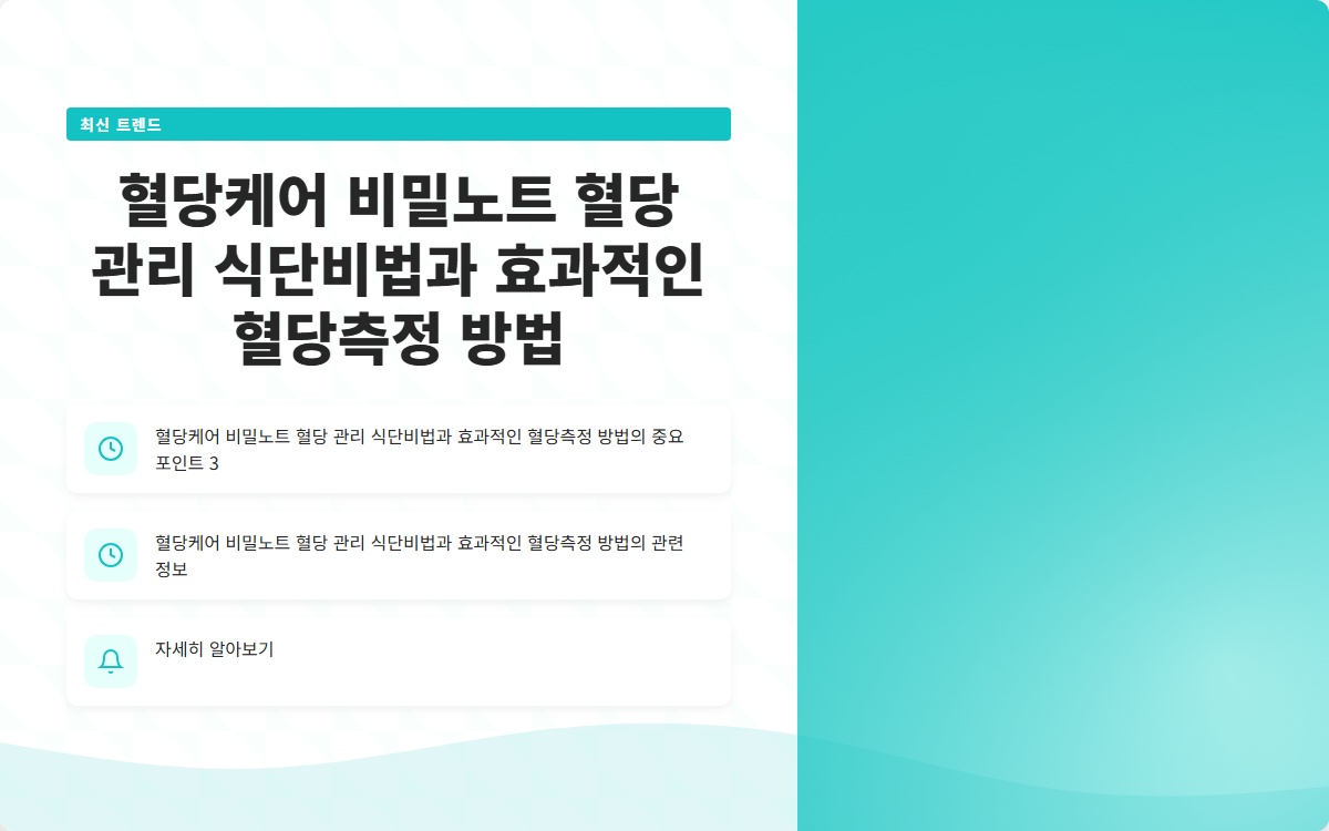 혈당 관리에는 여러 가지 방법이 있으며, 개인의 생활습관에 맞춰 조절하는 것이 중요합니다. 혈당측정 비법과 함께 건강한 식단을 실천하여 보다 나은 삶을 살아가길 바랍니다.