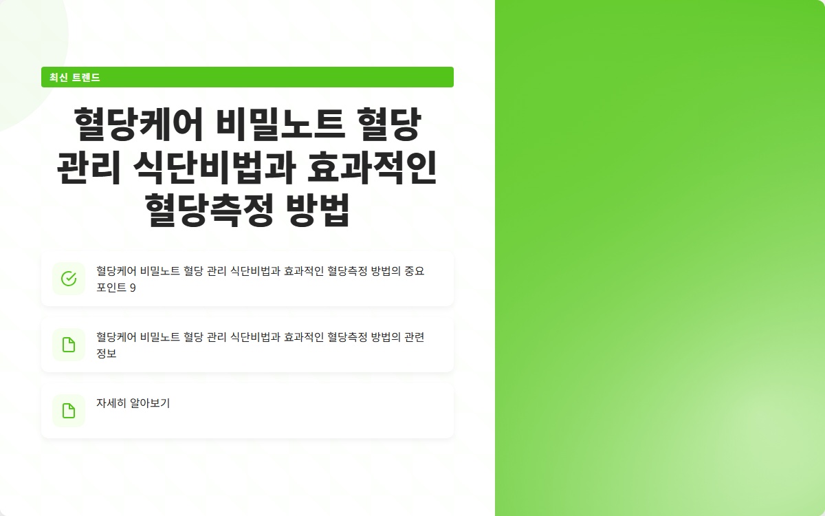 Tags: 혈당측정, 혈당 관리, 식단 비법, 고혈당, 저혈당, 당뇨 예방, 건강한 식습관, 혈당 측정기, 운동, 스트레스 관리